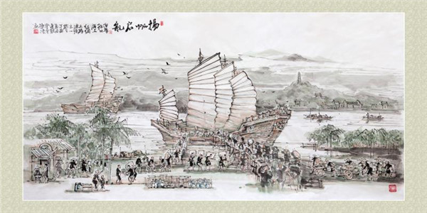 梅州松口港邊,帆檣林立,工人肩上扛著重物成列行走;畫面近處,屋舍、樹木細節(jié)清晰可見。這幅生動的《揚帆起航》載體并非畫紙,而是瓷磚。而這件瓷藝產品,便出自蒙娜麗莎集團股份有限公司(以下簡稱“蒙娜麗莎”)之手。