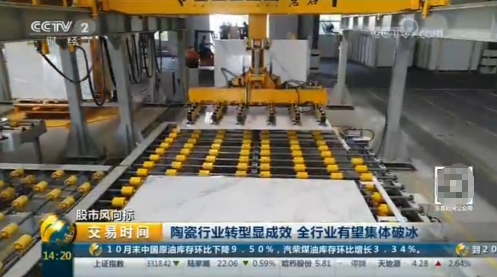11月28日,央視財經(jīng)頻道《交易時間》欄目以“陶瓷行業(yè)轉(zhuǎn)型顯成效 全行業(yè)有望集體破冰”為題,聚焦國內(nèi)陶瓷行業(yè),把鏡頭對準(zhǔn)了行業(yè)轉(zhuǎn)型中具有引領(lǐng)性的企業(yè),展現(xiàn)了陶瓷行業(yè)轉(zhuǎn)型的成效和向好趨勢。