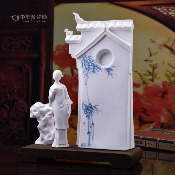 作者巧借德化溫潤(rùn)如玉的“中國(guó)白”精雕細(xì)刻,精致的發(fā)簪、飄逸的裙擺、纖細(xì)的手指、靈動(dòng)地把“四君子”傲、幽、堅(jiān)、淡的品質(zhì)表現(xiàn)出來(lái)。第四屆福建省陶瓷藝術(shù)設(shè)計(jì)創(chuàng)新評(píng)比金獎(jiǎng)。