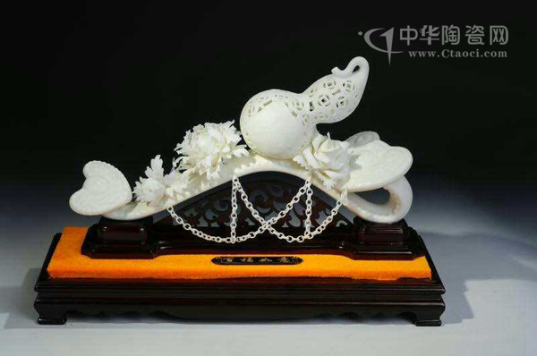 蘇志強(qiáng)的作品《圓滿如意》就是揉合中華傳統(tǒng)文化的元素,以如意棒為主體,圓球代表圓滿,蘊(yùn)含著“萬事如意”、“美美滿滿”的美好意象。作品純手工制作,精雕細(xì)刻,造型和諧,用璀璨的瓷花襯托柔軟鏈條的動(dòng)感,剛?cè)嵯酀?jì),松密結(jié)合,令人賞心悅目。作品并以德化特有的溫潤(rùn)如玉的“中國(guó)白”為胎質(zhì),潔白細(xì)膩,素凈淡雅。