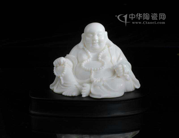 作品彌勒笑看風云戲珠贏,左手輕持如意,寓意事事順意,彌勒笑容可掬,雙耳垂肩。作品采用上等高嶺土經(jīng)1300多度高溫燒制,將彌勒的形象刻畫得形神兼?zhèn)洌蜩蛉缟?/p>