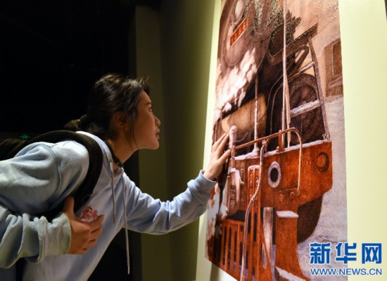12月8日,一名藝術(shù)愛好者在欣賞“瓷上版畫”。新華社記者宋振平攝