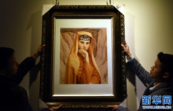 這是中央美術(shù)學(xué)院前院長靳尚誼創(chuàng)作的瓷板畫原作(12月8日),在原作上進(jìn)行二度創(chuàng)作成“瓷上版畫”。新華社記者宋振平攝