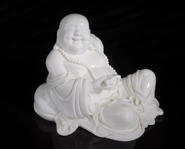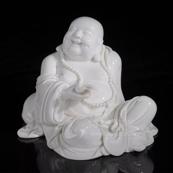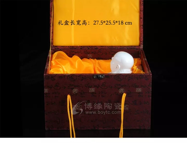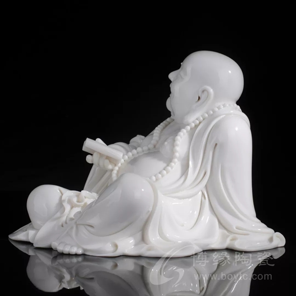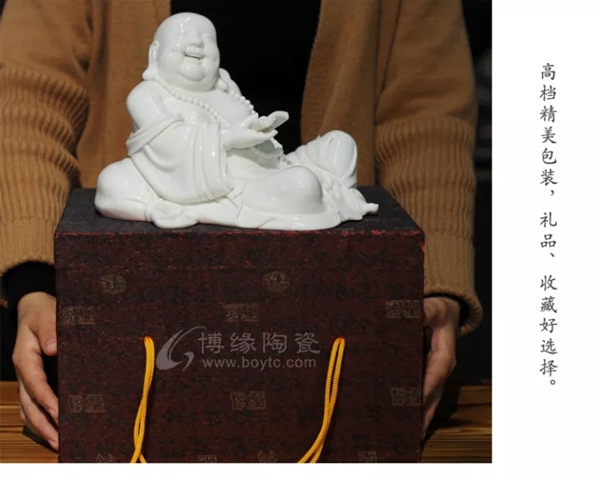 作品《學(xué)海無涯》(長寬高23*22*16 cm)由中國青年陶瓷藝術(shù)家柯維太設(shè)計(jì)制作,以德化特有的溫潤如玉的“中國白”為胎質(zhì),德化白瓷作品題材新穎獨(dú)特,純手工制作,彌勒半靠坐于布袋上,一手捧書,造型精美、細(xì)致、可愛又不失高雅,彌勒笑容滿面,神韻逼真,笑意醉人,長耳笑眼,姿態(tài)動(dòng)人,衣紋線條修長流暢清晰,層次分明,所塑人物性格鮮明, 神態(tài)逼真,是居家,辦公桌,公司,店鋪擺設(shè),有祈福保平安,助學(xué)業(yè)進(jìn)步,生意興隆,財(cái)源廣進(jìn)。