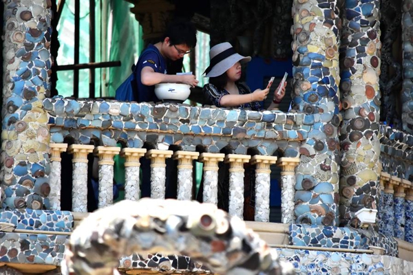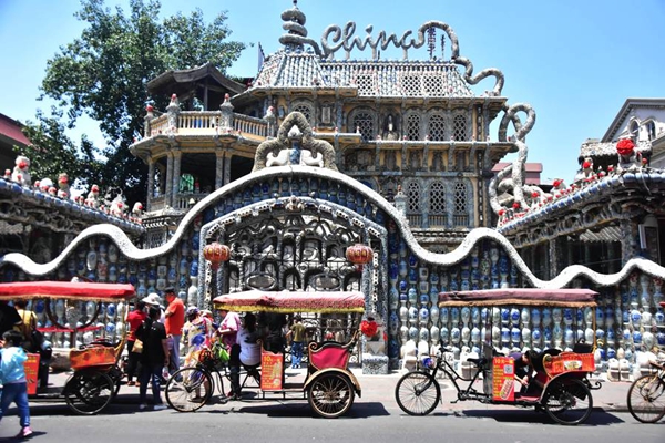 這是到內(nèi)部參觀的人員,在閣樓里欣賞古瓷片,并且用手機(jī)拍照。張連志耗時八年設(shè)計并建造了這么一座瓷房子,成為天津、中國乃至世界的一絕。張連志自己說,看到眼前的瓷房子,就像做了一個夢,這個夢一做就是八年,人們說張連志想象力豐富也好,說他是個瘋子也好,總之,他憑著瘋狂和熱愛,把一個童話世界呈現(xiàn)在了人們面前,你看九十多億值嗎?