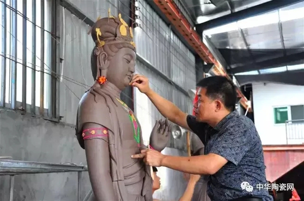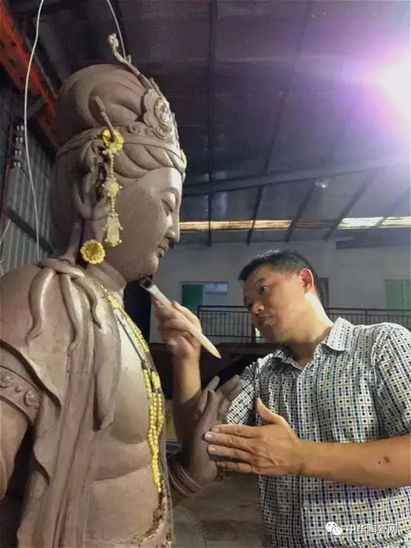 白瓷燒制人像的極限在1.8米以?xún)?nèi),對(duì)于四攝菩薩高度超過(guò)2.2米這么大體量的創(chuàng)作任務(wù),連紫華最初是拒絕的,讓他最終決定接受這一艱難創(chuàng)作的原因竟然是因?yàn)橐淮胃袆?dòng)。