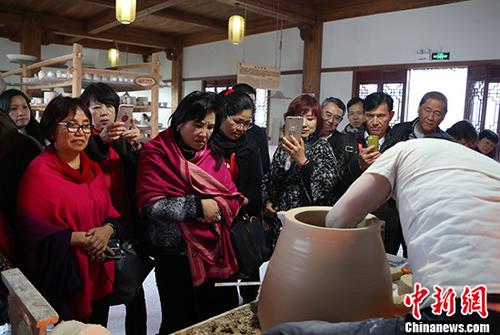 海外華文教育學(xué)校校長(zhǎng)在觀看景德鎮(zhèn)傳統(tǒng)的手工制瓷技藝!⒄祭ァz