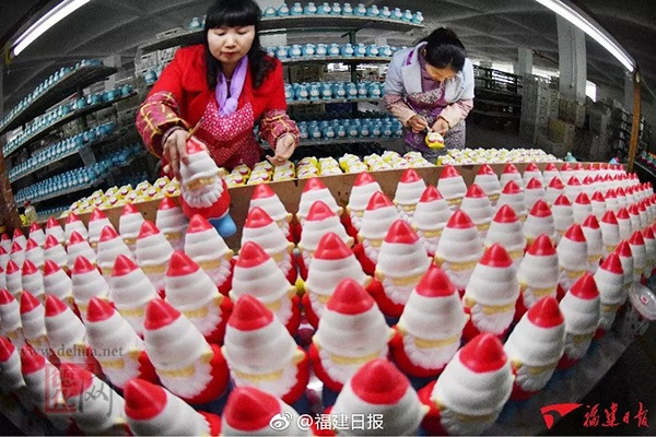 隨著圣誕的臨近,德化縣多家圣誕陶瓷飾品生產(chǎn)企業(yè)迎來生產(chǎn)和銷售的高峰期。今年來,德化縣面對圣誕陶瓷飾品海外市場需求強(qiáng)勁,多家陶瓷企業(yè)從圣誕童話故事人物與動物卡通造型設(shè)計入手,將德化制瓷工藝與圣誕文化巧妙融合,生產(chǎn)具有異域文化內(nèi)涵的圣誕陶瓷系列產(chǎn)品,深受外國消費(fèi)者的喜愛。據(jù)統(tǒng)計,今年1-10月,德化外貿(mào)自營出口總額149705萬元,同比增長16.2%。