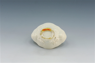 德化白瓷為純白釉,強(qiáng)光照射下,胎釉中隱現(xiàn)粉紅或奶白色,因此德化白瓷又有“豬油白”“象牙白”“孩兒紅”和“蔥根白”之稱。待其外銷至歐洲后,更被法國(guó)人稱為“Blanede China”,意為“中國(guó)白”。清末著名學(xué)者、古玩收藏家趙汝珍曾贊頌其道:“似定器而無(wú)開片,若乳白之細(xì)滑,宛如象牙光色,如絹細(xì)水瑩厚。”民國(guó)的許之衡在《飲流齋說(shuō)瓷》中也寫道:“后制者出德化,色甚白,而頗瑩亮,亦名福窯。白者頗似定窯,惟無(wú)開片,佳者瓷質(zhì)頗厚,而青里能映見指影,以白中閃紅者為貴。”與其相比,唐代“類銀類雪”的邢窯、宋代五大名窯之一的定窯白瓷則泛淡黃色;景德鎮(zhèn)窯元代的樞府釉以及明代的甜白釉基本都是泛青,接近青白釉;與明代德化白瓷凍玉凝脂的乳白相比,都略輸一籌。