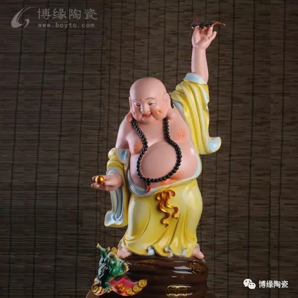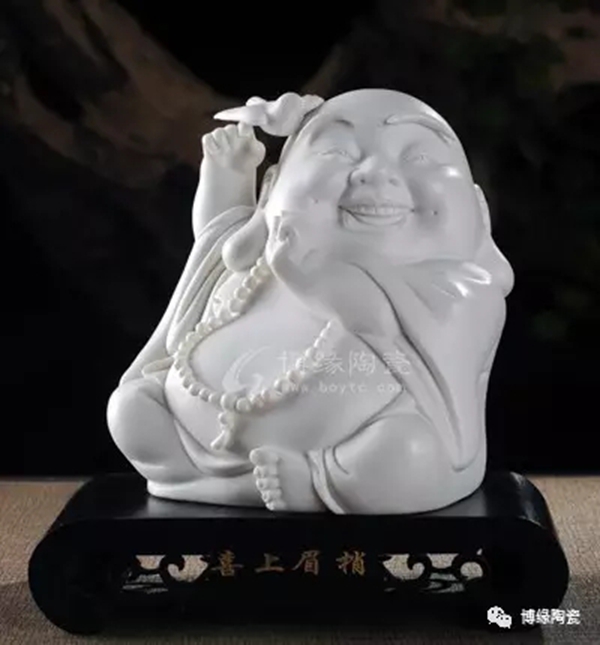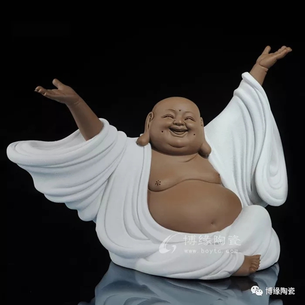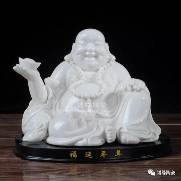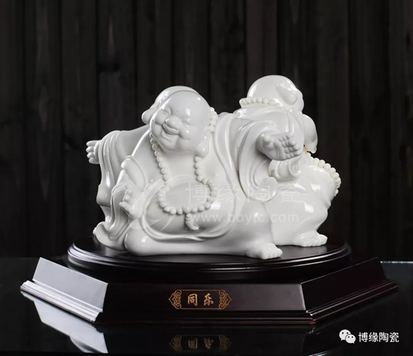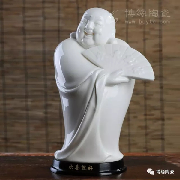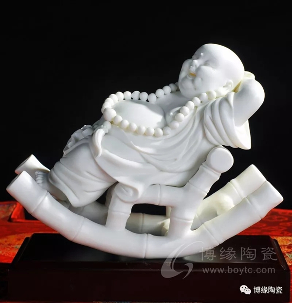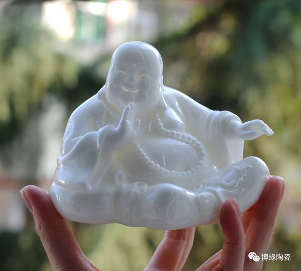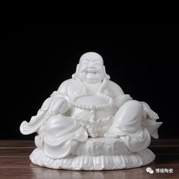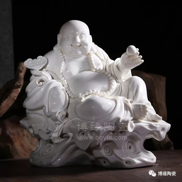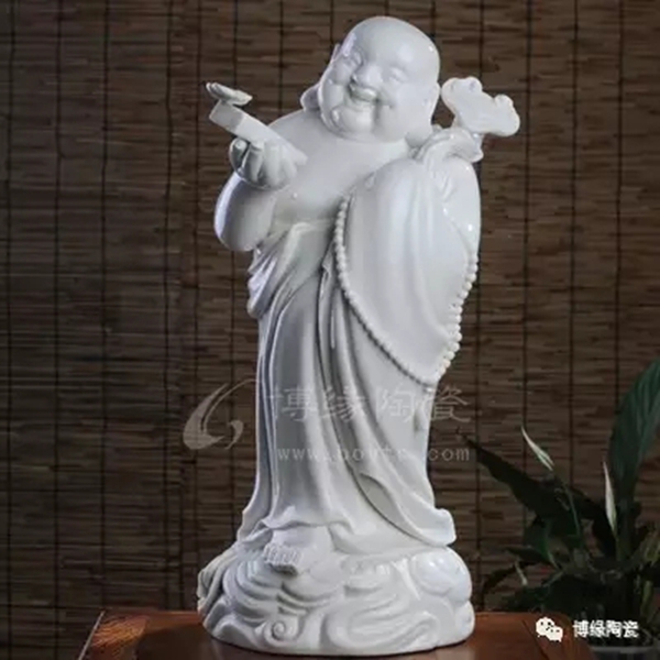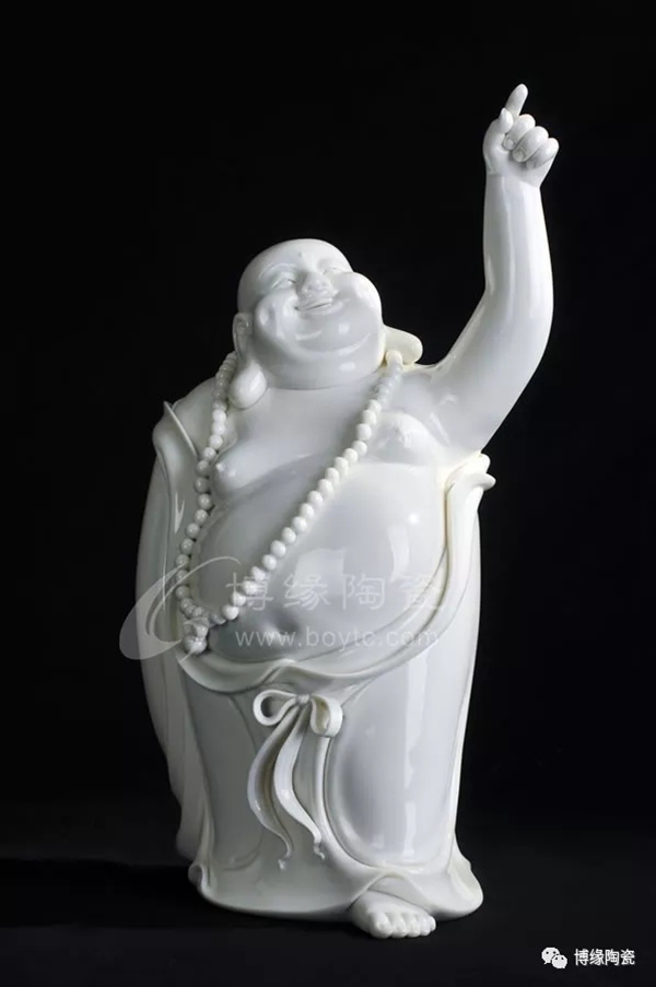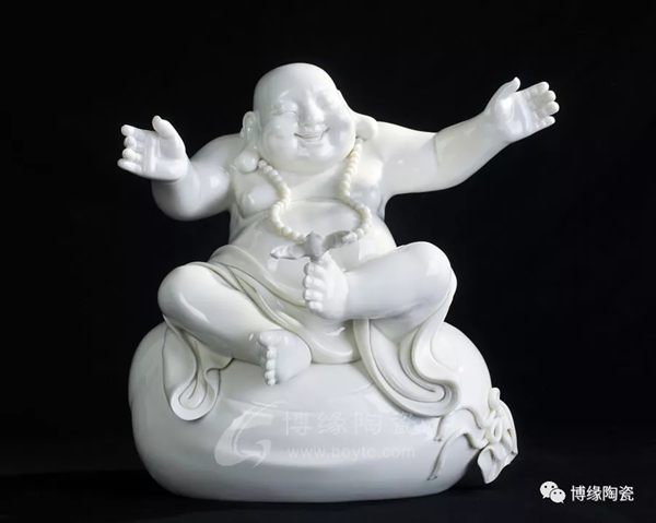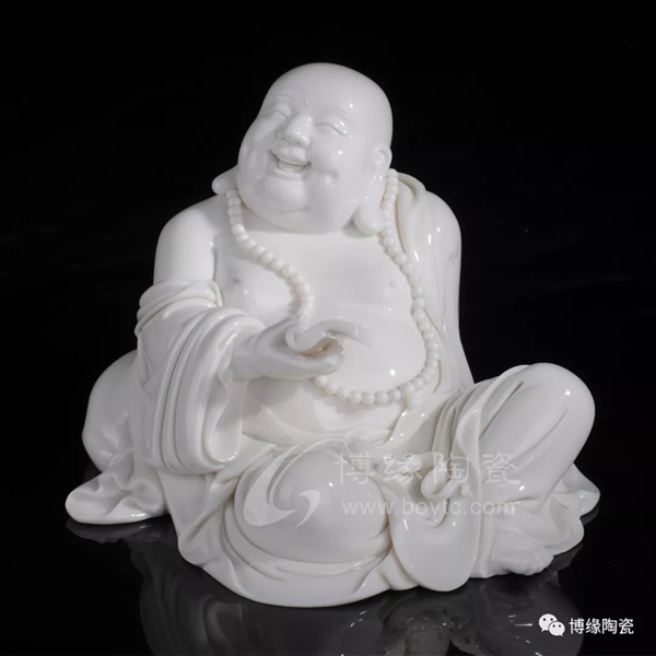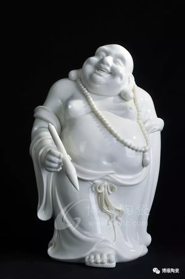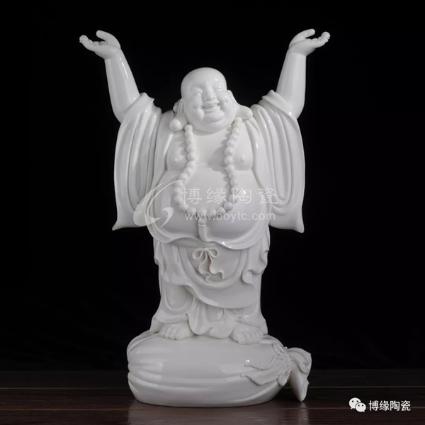 何派彌勒雕塑注重于細(xì)節(jié)之美,精益求精,故而十分著意衣紋的刻畫(huà),使線條清晰,流暢,翻轉(zhuǎn)自然。其白瓷彌勒佛像,格調(diào)高雅、肅穆大方、形態(tài)逼真、工藝精細(xì),有“東方藝術(shù)”精品之美譽(yù),堪稱白瓷彌勒佛像,瓷中一絕。