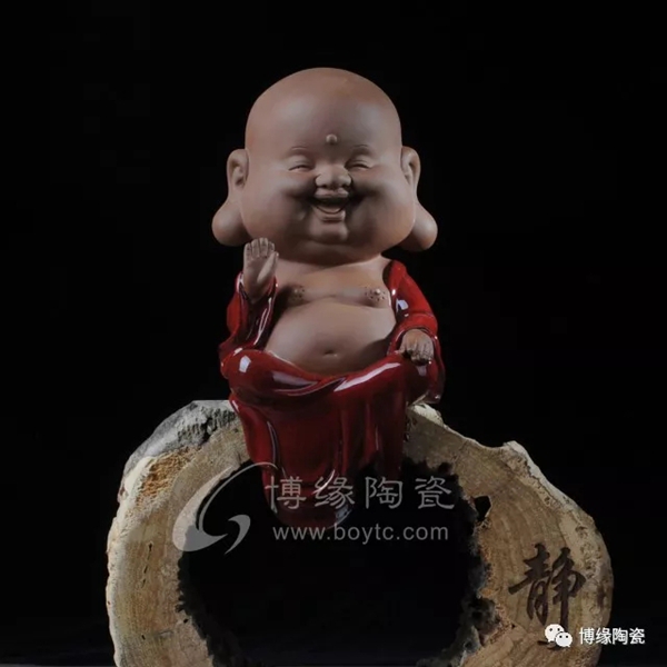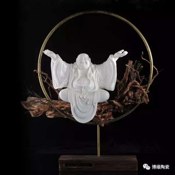 巧用溫潤(rùn)如玉的“中國(guó)白”與古樸典雅的根雕搭配,營(yíng)造出一種安靜祥和的氛圍。所謂大肚能容天下難容之事,笑口常開(kāi),笑天下可笑之人。彌勒坦腹趺坐,腰肢粗大,笑口常開(kāi),神情溫和,那愉快的形象和表情都會(huì)讓每一個(gè)見(jiàn)到他的人忍俊不禁。