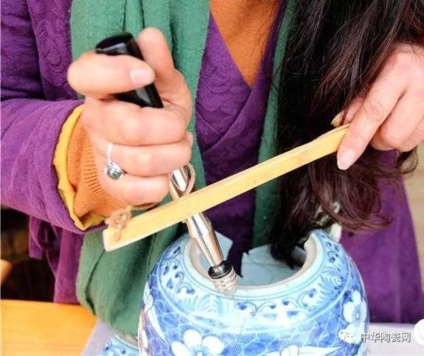 鋦瓷,是中國的一門古老技藝。鋦瓷工藝就是以金剛鉆為針,以鋦釘為線,把打碎的瓷器,用銅、鐵等金屬“鋦子”釘起來,使之得以修復(fù)并重新使用的技術(shù)。