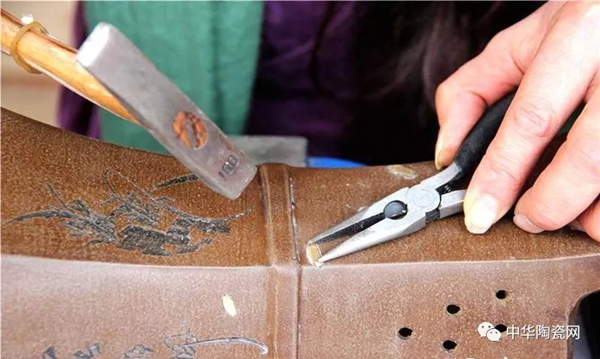 “鋦瓷工藝采用手工制作,工藝復(fù)雜。