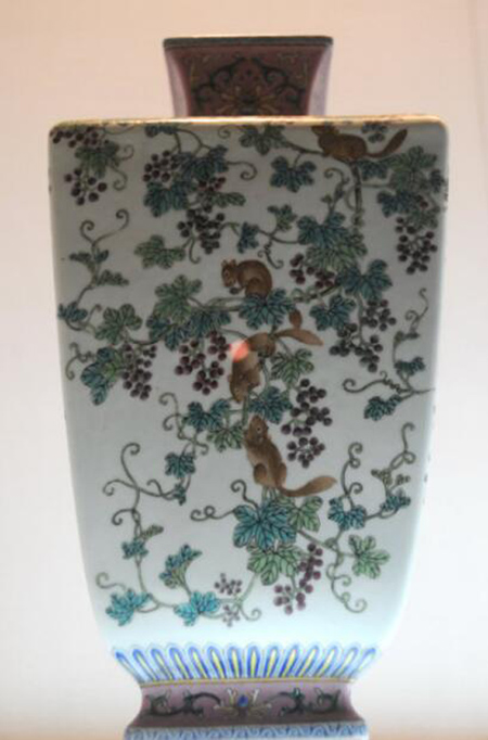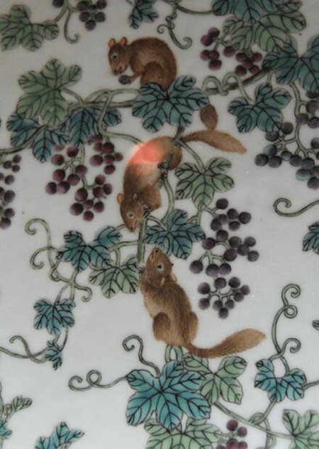 粉彩松鼠葡萄紋瓷方尊(局部細(xì)節(jié)圖) 清乾隆 國(guó)家一級(jí)文物