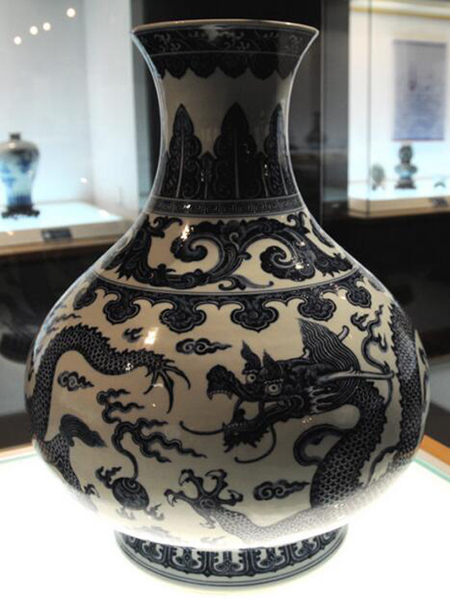 青花趕珠龍紋大瓶頸部細(xì)節(jié) 清雍正