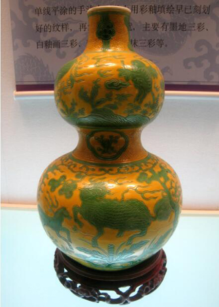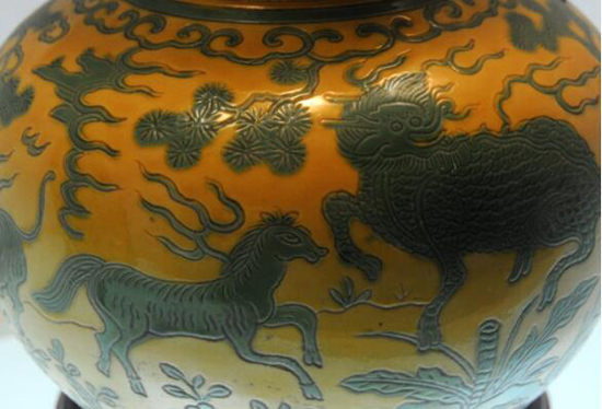 黃地綠彩瑞獸紋葫蘆瓶(局部細(xì)節(jié)) 清康熙