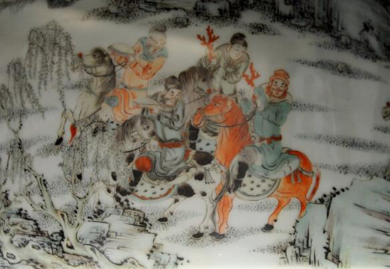 八騎獻(xiàn)寶紋花盆(局部細(xì)節(jié)) 清康熙