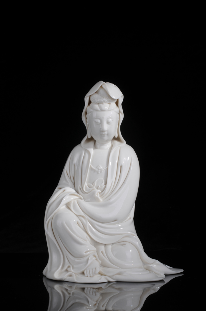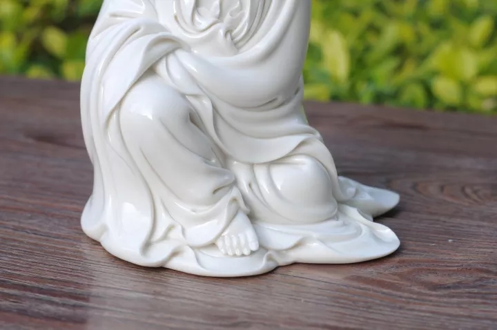 簡(jiǎn)介:作品由中國(guó)青年陶瓷藝術(shù)家柯維太設(shè)計(jì)制作,作品精選上乘德化原礦高嶺土,經(jīng)過(guò)嚴(yán)格配方加工,觀音面部低首垂目、飽滿豐潤(rùn)、神情慈祥,似在俯瞰塵世眾生。觀音的珠串、花飾手工捏塑而成,細(xì)致逼真,觀音衣紋自然,線條流暢、飄逸,堪稱為一件佳作。