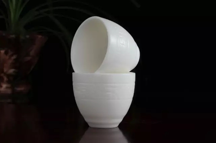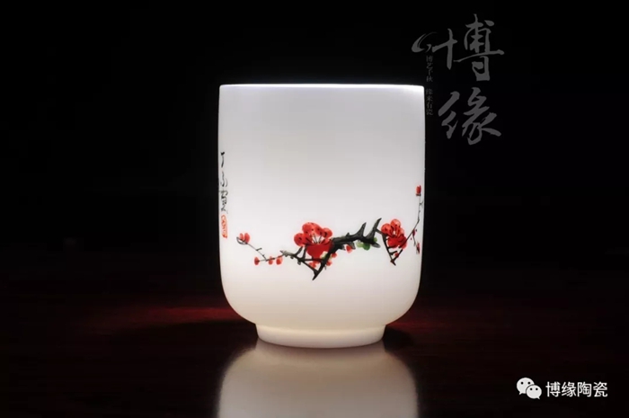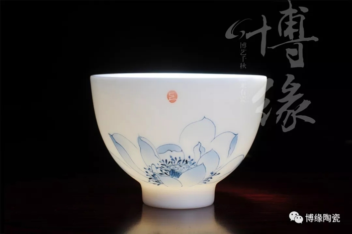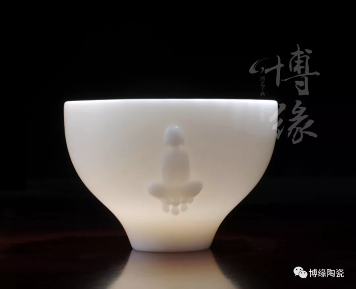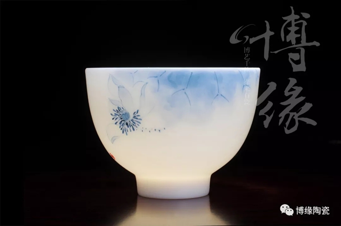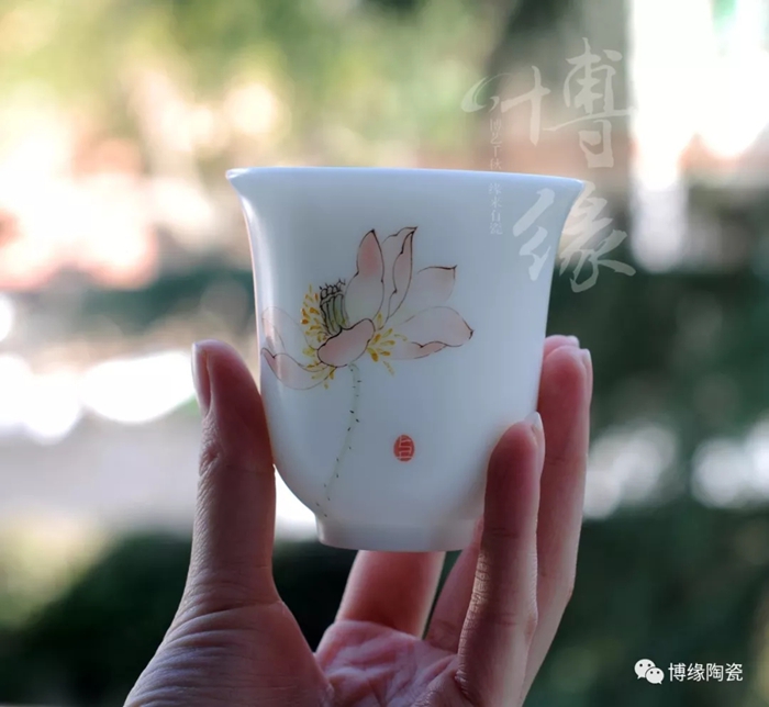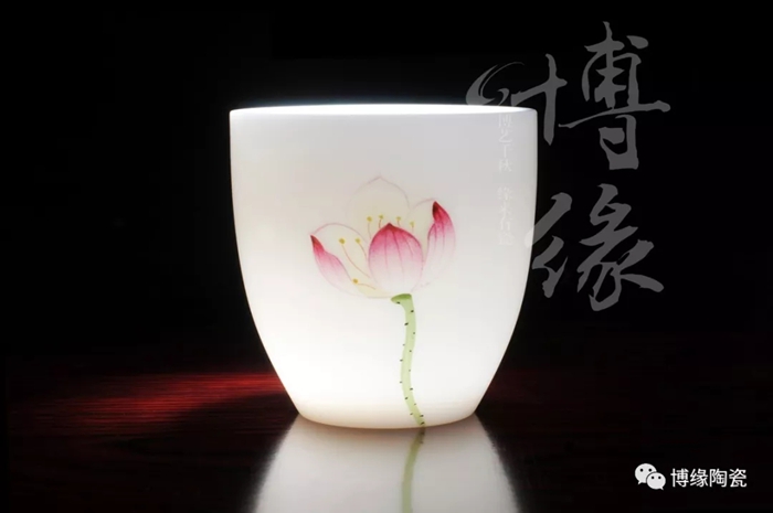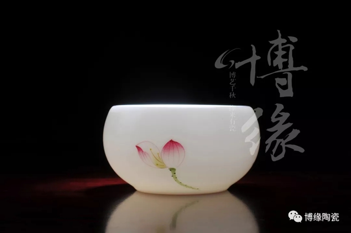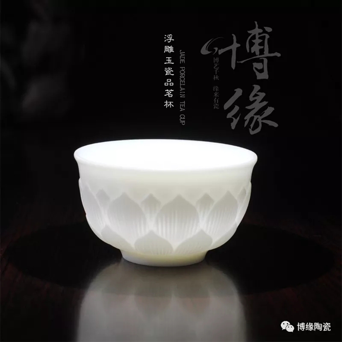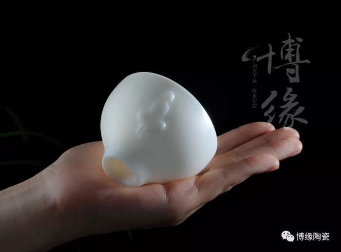 博緣的玉瓷杯,不上釉的玉瓷杯瓷質(zhì)容不得半點瑕疵,是經(jīng)過層層提純挑選出來的,成型率低,因此價格頗高。