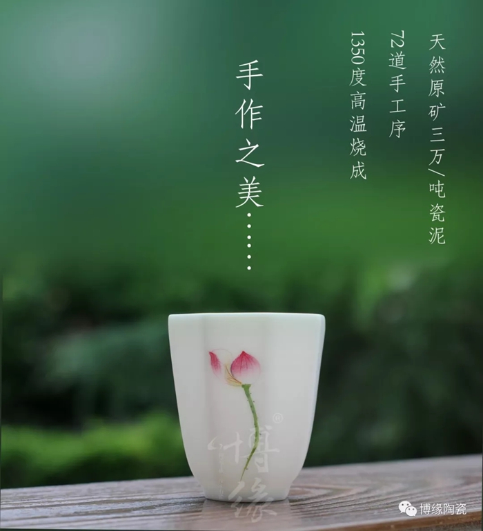 博緣玉瓷系列茶器,經(jīng)1350℃燒制,原礦瓷泥,環(huán)保養(yǎng)生,與紫砂杯相反,它不吸茶味,一款適合泡任何茶的瓷杯。
