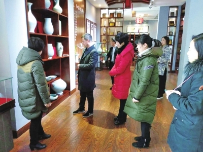 本報訊1月25日,中國陶瓷旅游聯(lián)盟秘書長聶張成一行蒞臨汝州,實地考察汝州旅游接待設施及汝瓷企業(yè)發(fā)展情況,為2018年春季陶瓷研學旅游專列進汝州做前期準備。汝州市旅游局副局長黨曉葉及相關科室負責人陪同考察。