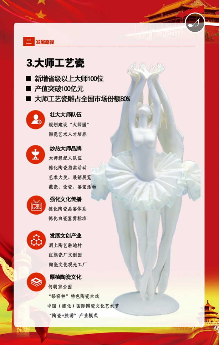 13、創(chuàng)建市級(jí)以上文化產(chǎn)業(yè)示范基地20家,陶瓷文化旅游產(chǎn)業(yè)年產(chǎn)值50億元