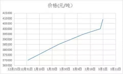 春節(jié)過(guò)后,作為陶瓷色料的主要原料之一,氧化鈷可謂是一飛沖天。據(jù)長(zhǎng)江有色金屬網(wǎng)數(shù)據(jù)顯示,氧化鈷年前年前報(bào)價(jià)為38萬(wàn)元/噸左右,而春節(jié)后則已達(dá)到41萬(wàn)元/噸。而到了陶瓷色料企業(yè),報(bào)價(jià)則更高。