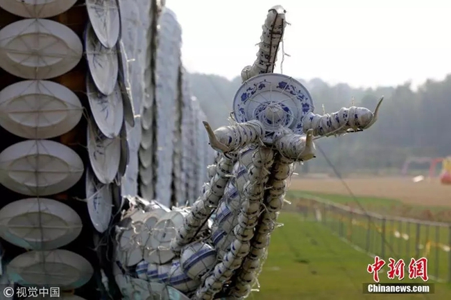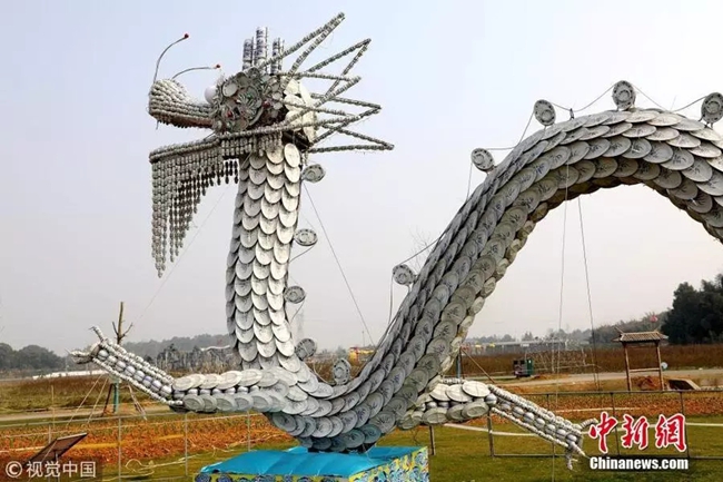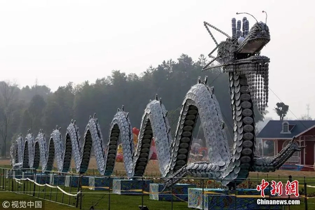2月25日,湖南常德洞庭花海非物質(zhì)文化遺產(chǎn)燈光展上,一條身長(zhǎng)近100米,由30000多個(gè)瓷碗、瓷瓢、瓷杯、瓷盆搭建而成的“瓷器龍”顯得十分逼真,氣勢(shì)磅礴吸引游人眼球。