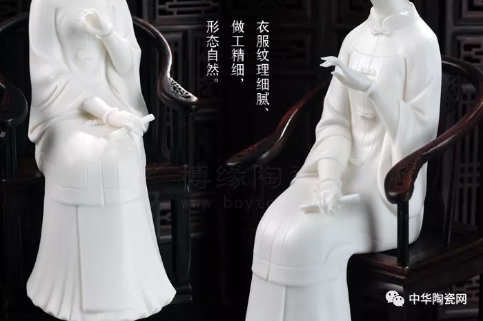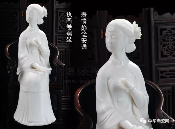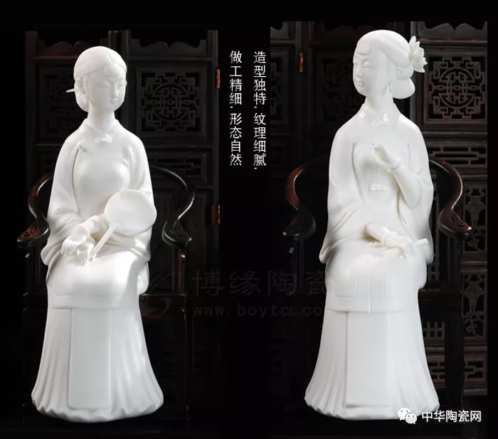 德化陶瓷作品創(chuàng)作題材豐富,其中仕女也是一大題材之一,自古以來,以四大美女、唐清仕女等人物創(chuàng)作的作品比比皆是。因德化白瓷細膩,可塑性強,適合仕女作品創(chuàng)作,所創(chuàng)作品人物傳神,雕刻精細。