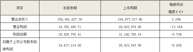 報告顯示,廣東新勁剛新材料科技股份有限公司實現(xiàn)營業(yè)收入25,049.10萬元,同比增長 2.29%;但營業(yè)利潤2,435.25萬元,同比下降了 13.16%;凈利潤2,461.72 萬元,同比下降8.20%;