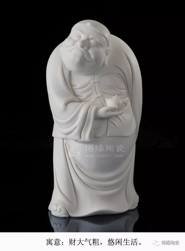 作品題材獨(dú)特新穎,創(chuàng)作手法隨性,以富態(tài)悠閑、悠然自得的地主形象為題材,寓意著財(cái)運(yùn)亨通,納四方財(cái)、招財(cái)進(jìn)寶,作品不僅寓意美好。而且作品是精細(xì)德化上好的白瓷為瓷質(zhì)、含雜質(zhì)少,瓷質(zhì)潔白 ,瓷感細(xì)膩。作品技藝精湛,關(guān)注每一處細(xì)節(jié),精雕細(xì)刻,技法細(xì)膩溫潤(rùn),線條清晰、簡(jiǎn)潔、瀟灑。作品還需經(jīng)一千三百多度高溫?zé)贫伞J羌揖、店鋪、?huì)所、公司等的最佳招財(cái)擺件之選。