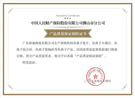 特地·負(fù)離子瓷磚擁有900*1800 mm負(fù)離子大板、600*900 /800*800 mm負(fù)離子大理石、600*600 mm負(fù)離子現(xiàn)代仿古磚等,全品類系列負(fù)離子功能產(chǎn)品。本公司負(fù)離子功能產(chǎn)品由中國人民財(cái)產(chǎn)保險(xiǎn)承保,讓客戶購買產(chǎn)品全無后顧之憂。