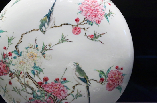 雍正粉彩花鳥抱月瓶,大維德基金會藏