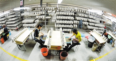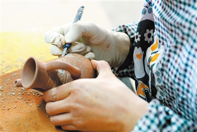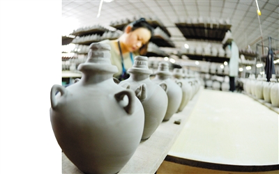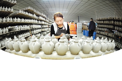 近日,在武威市夏王陶瓷工藝制品有限公司,工人們制作西夏瓷器風(fēng)格酒瓶配件。甘肅武威曾是西夏的輔郡,當(dāng)?shù)爻鐾恋奈飨拇善骷拔飨谋绕魑,以其深厚的文化沉淀見證了西夏文化的輝煌。