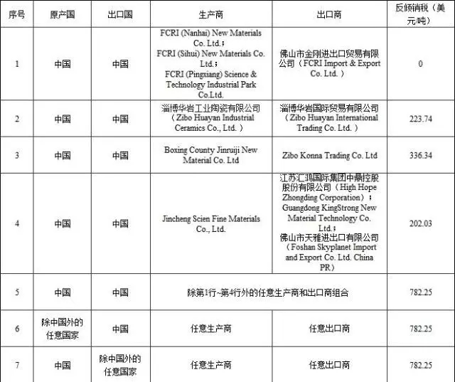 附表:涉案企業(yè)反傾銷(xiāo)稅率表