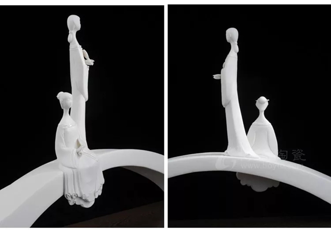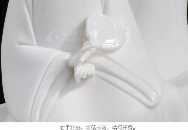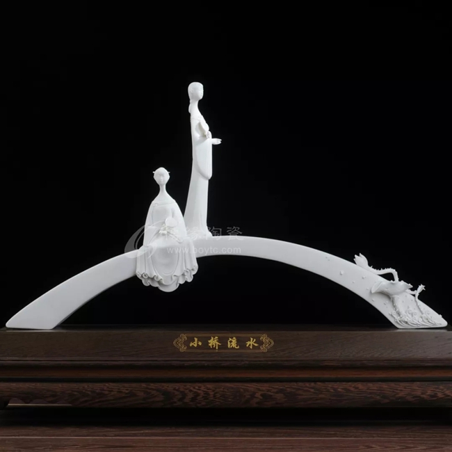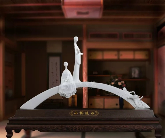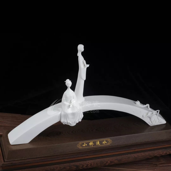 作品以德化優(yōu)質(zhì)的白瓷為材料,運(yùn)用極其概括的藝術(shù)手法,顯現(xiàn)出一副恬靜的畫面,作品以妙齡少女,小橋,荷花為作品主題,把作品雕刻的栩栩如生,讓人觸景生情勾勒起江南之美,如畫的風(fēng)景,讓人不由駐足欣賞這美景,晨光照應(yīng)著小橋邊的荷花,流水,春風(fēng)吹拂著江南的水,水波微微蕩漾著,怎能叫人錯(cuò)過(guò)如此美景。。。