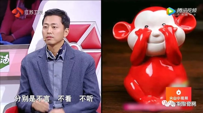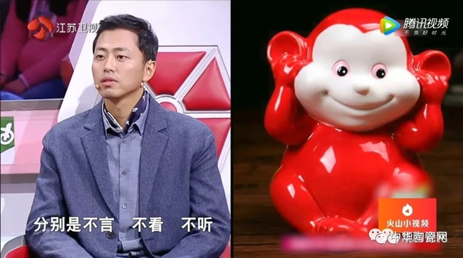 2018年江蘇衛(wèi)視《最強(qiáng)大腦》第九期節(jié)目中,主持人引用世界陶瓷之都·德化瓷雕技師林國(guó)本的《不言,不看,不聽》三只猴子陶瓷作品的創(chuàng)作理念作為解說版本。