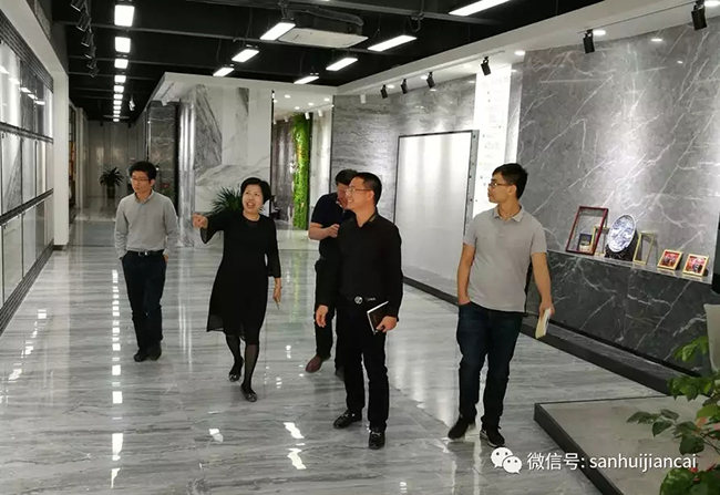 蘇副局長一行在楊寶貴副董事長的陪同下參觀了新展廳,對協(xié)進(jìn)研發(fā)生產(chǎn)的一系列大規(guī)格薄板、大板、外墻保溫復(fù)合一體板等綠色節(jié)能新產(chǎn)品贊賞有加;隨后深入生產(chǎn)車間和技術(shù)研發(fā)中心檢查企業(yè)創(chuàng)新研發(fā)工作的開展情況,鼓勵企業(yè)持續(xù)創(chuàng)新發(fā)展,開拓新市場,再創(chuàng)新佳績。