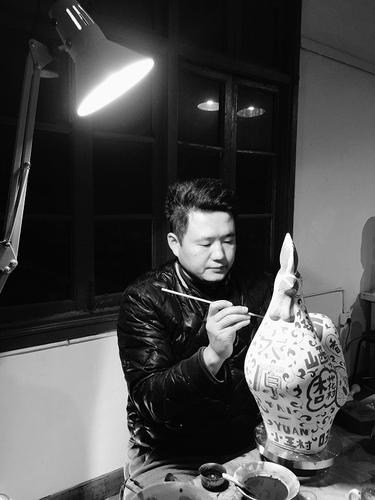 與此同時(shí),他也在不斷學(xué)習(xí),報(bào)名參加各種培訓(xùn)班。2015年,參加中央文化管理干部學(xué)院“文化部文化產(chǎn)業(yè)創(chuàng)意人才培訓(xùn)班”;2016年,參加景德鎮(zhèn)陶瓷大學(xué)《中國(guó)非物質(zhì)文化遺產(chǎn)傳承人群研修研習(xí)培訓(xùn)計(jì)劃》研修班;2017年參加國(guó)家藝術(shù)基金《景德鎮(zhèn)民間青花瓷技藝傳承與創(chuàng)新人才培養(yǎng)》高級(jí)研修班……郭超說(shuō),他的目標(biāo)就是在學(xué)習(xí)中提升自己,然后去做出一些更符合時(shí)代、更符合年輕人氣質(zhì)的作品。