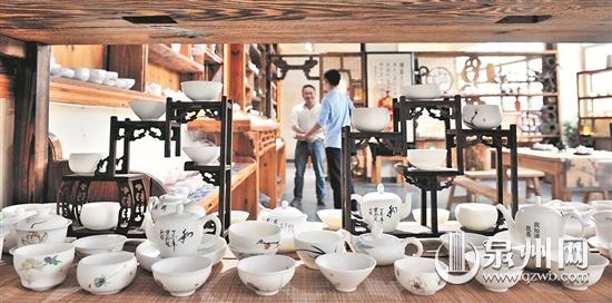 在德化成藝陶瓷有限公司的展廳里,不同款式的茶具整齊地擺放在展柜上,供前來參觀的客戶們參觀、了解。這家成立于1997年的企業(yè),同樣專注中高端陶瓷茶具的研發(fā)、生產(chǎn)和銷售,通過線上線下結(jié)合,產(chǎn)品銷往全國各地。“雖然我們是小作坊起家,但在發(fā)展過程中一直注重產(chǎn)品開發(fā)設(shè)計和品質(zhì)把控,產(chǎn)品備受消費者青睞。”該公司行政部負(fù)責(zé)人陳志強(qiáng)介紹,去年,金磚國家領(lǐng)導(dǎo)人廈門會晤期間,該公司設(shè)計贊助的繪有會標(biāo)的迎賓會議杯得到大家的認(rèn)可,也為企業(yè)帶來了源源不斷的訂單。