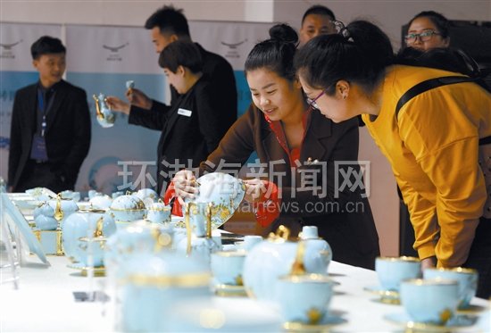 圖為市民和客商正在參觀國宴用瓷。本報(bào)記者 呂光宇 通訊員 王磊 攝