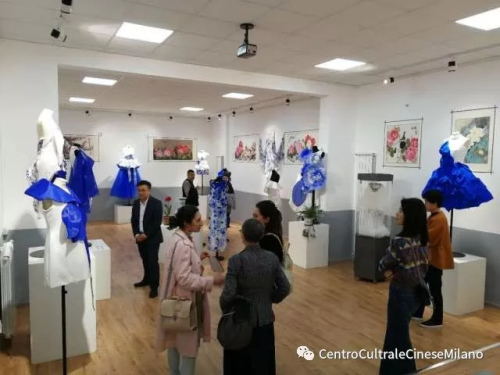 服裝設(shè)計展以“中國傳統(tǒng)青花瓷元素”為主題,由米蘭中國文化中心與那巴美院共同主辦,為米蘭設(shè)計周增添一抹靚麗的青花色彩,也為海外僑胞及意大利本土居民呈現(xiàn)一場“傳統(tǒng)文化與現(xiàn)代設(shè)計碰撞”的視覺盛宴,更是一場與青花瓷的浪漫邂逅。那巴美院系主任、副主任、教授等紛紛到場祝賀。