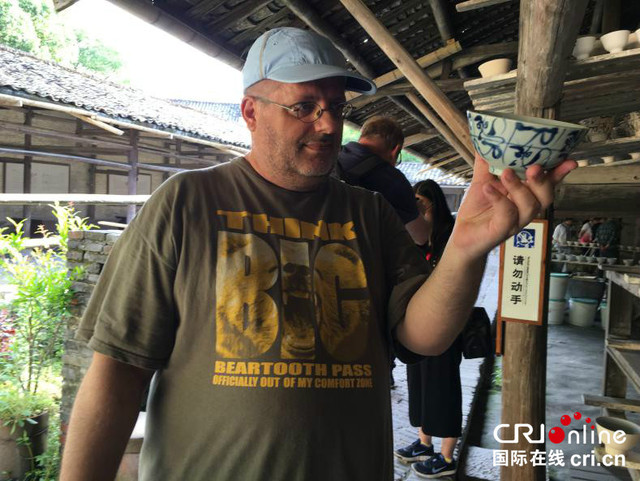 匈牙利記者拉斯洛在景德鎮(zhèn)陶瓷民俗博物館觀看燒制好的瓷碗。攝影 趙征宇