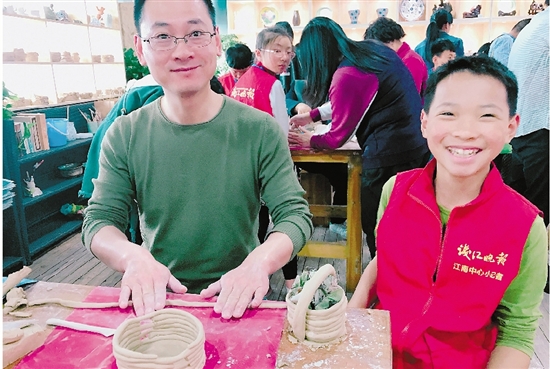 擺在我們面前的有好多胚模,分給各個小記者們,做法也有很多種,有手工制作的也有機(jī)制的,老師今天教小記者們一種“搓條法”的花瓶制作,然后陶泥在小朋友手里開始慢慢地搓成條狀,圍在事先印好的圖形上,越疊越高,形成一個花瓶,這就是“搓條法”,然后給我整形,刻花,上釉,這幾個步驟給我打扮完成后他們狠心把我放進(jìn)了1150℃的燒爐里歷練了10多個小時,我從一個丑小鴨飛升變成了白天鵝,打開爐門的一剎那我迫不及待地完美綻放了我自己。小記者們在老師的幫助下看到自己的作品感到非常驚艷,而我亦是靜悄悄地在那里釋放屬于我自己的那份美,以及中華五千年的悠悠歷史文化沉淀!