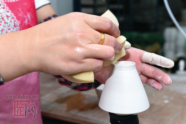 “雅自玉瓷”的工人在給坯體擦水,每道工序都嚴(yán)格把關(guān)。