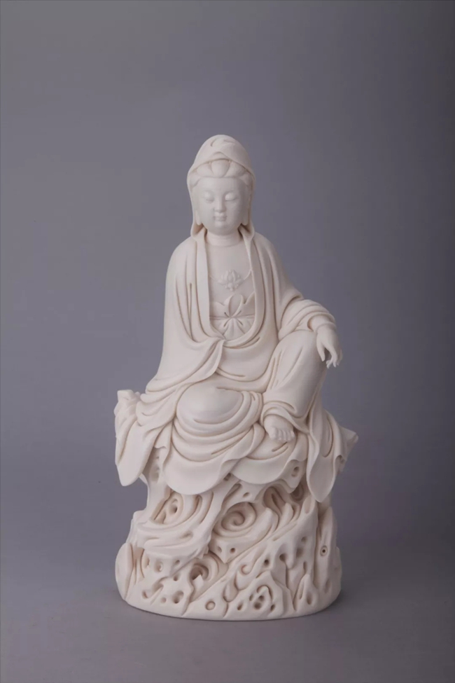 △現(xiàn)代德化窯坐巖瓷觀音(川博館藏)