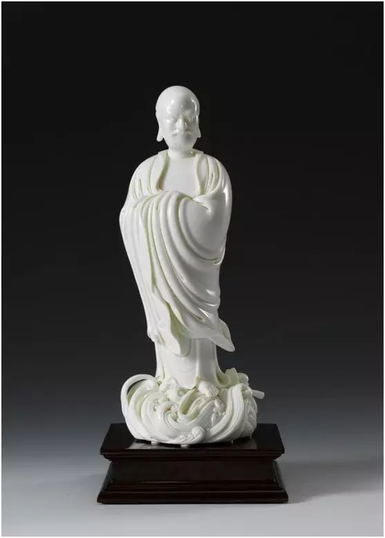 明代德化窯在元青白瓷的基礎(chǔ)上發(fā)展到一個新的歷史高峰,這種特殊的“白瓷”——瓷質(zhì)致密,胎釉純白、渾然一體、潔潤滑膩、如脂似玉,整體晶瑩剔透、叩擊如磬,其釉色純凈,釉面晶瑩光亮,乳白似象牙,美不勝收,進一步將追求玉器質(zhì)感的完美性發(fā)展到歷史的巔峰,代表了當時白瓷生產(chǎn)的最高水平,有“象牙白”、“豬油白”之美稱,西方則稱之為“中國白”(Blanc de chine)、“世界白瓷之母”。