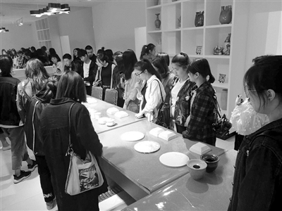 此外,大學(xué)生們不僅參觀了園區(qū)內(nèi)一體化生產(chǎn)車間,還在專業(yè)高級(jí)技師的指導(dǎo)下,學(xué)習(xí)陶瓷的制作工藝流程,并動(dòng)手進(jìn)行拉坯、印泥實(shí)踐。學(xué)生們還在自己的作品中,融入對(duì)遼瓷文化的了解,詮釋自己的創(chuàng)意靈感。