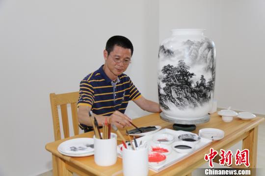 廣東省陶瓷藝術(shù)大師黃建宏在創(chuàng)作中