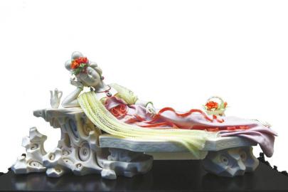 更讓觀眾驚訝的是,大師們不僅可以用陶瓷燒出衣服的紋飾,還能做出衣服的肌理,其技藝讓人嘆為觀止。此次展覽的作品《貴妃醉酒》,不僅貴妃姿態(tài)柔媚,身上陶瓷綢紗薄如蟬翼,完全達(dá)到了“只恐風(fēng)吹去,還愁日炙消”的藝術(shù)效果。而這樣一件作品,有時(shí)候僅前期雕塑就可能耗時(shí)兩三年。